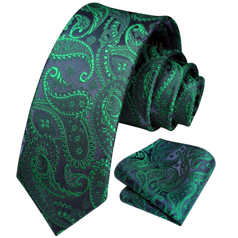 Enlision Green Paisley Tie Boys Necktie Pocket Square Set Forest Hunter Children Tie for Boy Classic Formal Navy Neck Strap Tie for Kids Party School