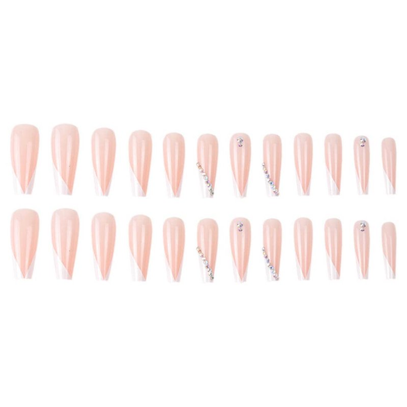 Enppode French Tip Press on Nails Long Stick on Nails White Nails with Rhinestones Glossy Coffin Fake Nails