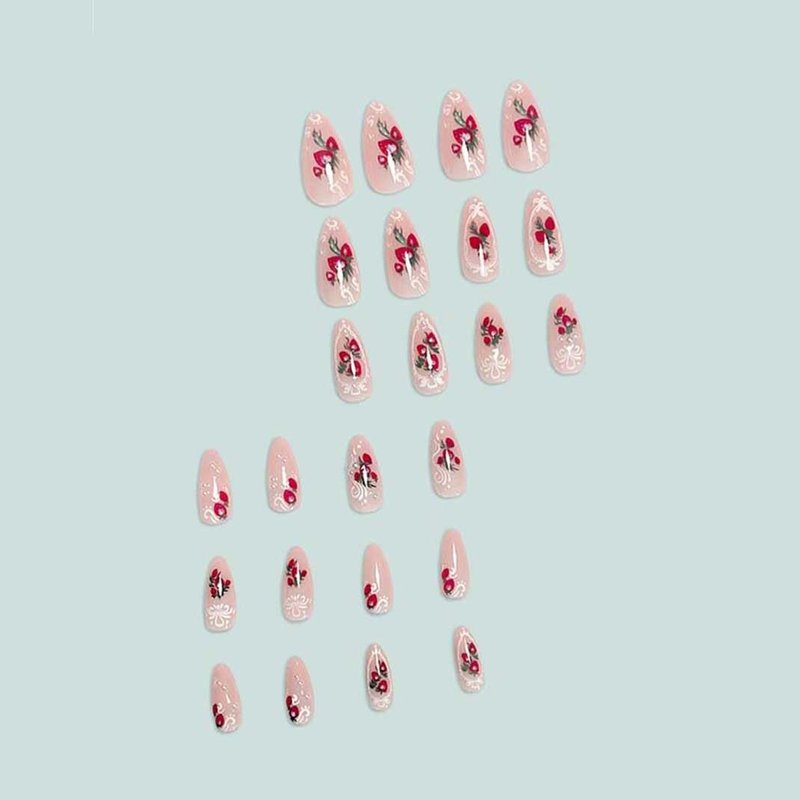 - 【Healthy, Durable, Easy to file and trim】:almond press on nails with strawberry design are made of durable and repeated acrylic, environmentally friendly, healthy, durable.There are 12 sizes, suitable for most people. It is also easy to file and trim, making fake nails more suitable for our natural nails.