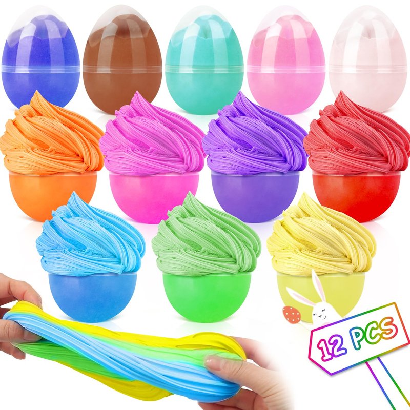 - Slime Easter Basket Stuffers: Elevate Easter fun with our Butter Slime Kit. Set of 12 Easter slime eggs,The size is perfect for your Easter egg hunt party, and kids will be thrilled to discover them during the Easter egg hunt. Perfect as Easter basket stuffers for kids.