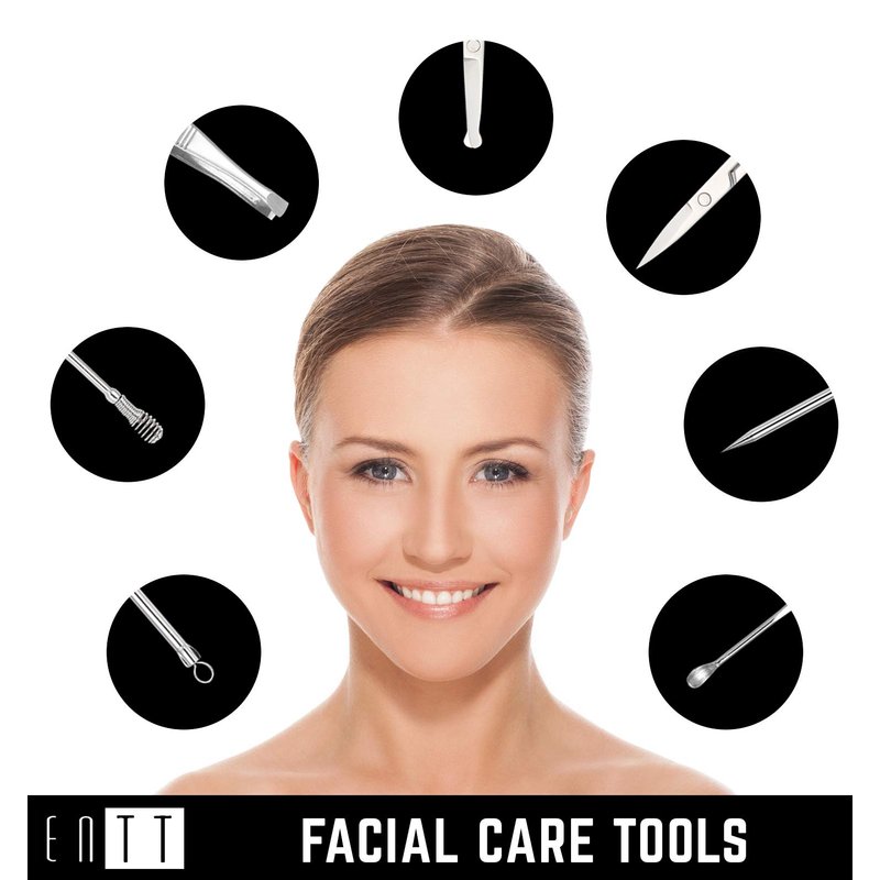 - ALL ROUNDER: One kit that includes tools for grooming your hands, feet and face. Now enjoy doing your own Manicures, Pedicures and facials at home carefully. The tools are of a professional grade stainless steel with a Matt finish. for a sturdy grip.