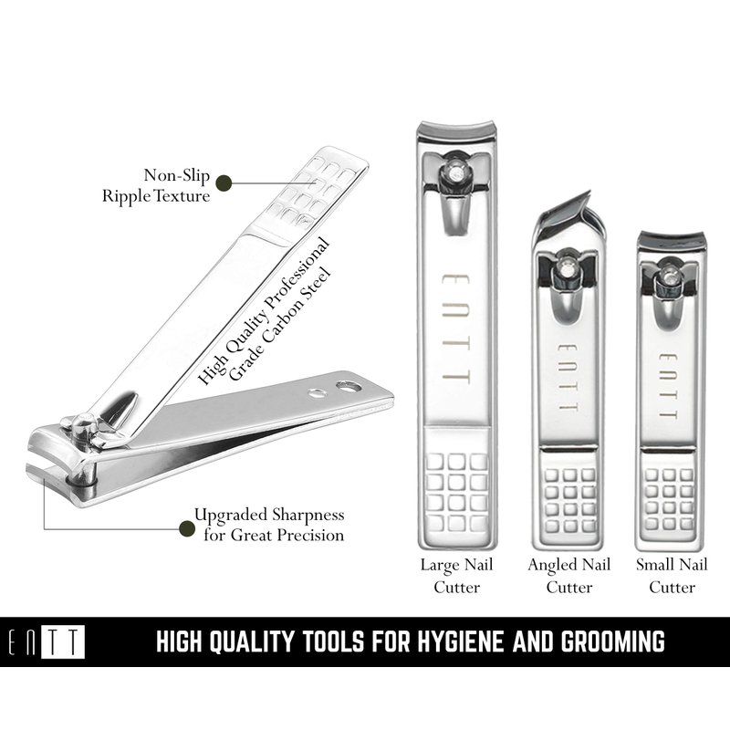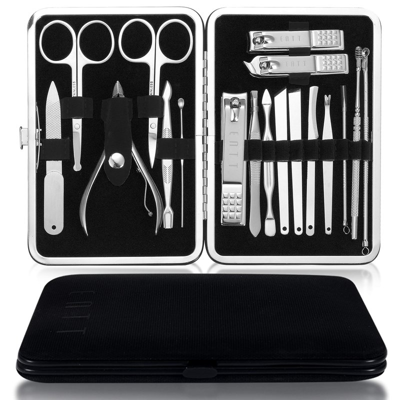 ENTT 18 Piece Manicure Pedicure Set & Grooming Kit - Gift for Men, Women, Wife, Husband, Teen, Seniors, Parents – Carbon Steel Tools - Premium Travel Case & Professional Nail Clippers – Black Case