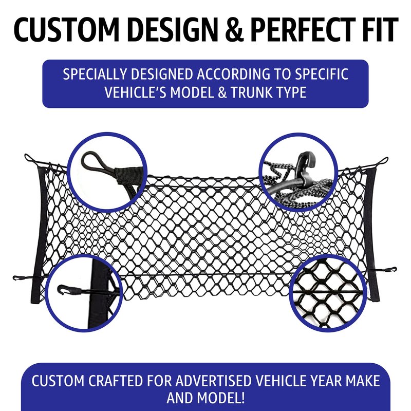 - HIGHEST STANDARDS - All trunk accessories are made with premium materials and comply with all manufacturing standards. We provide a 1-year warranty on our truck cargo netting. Dedicated to car owners and those who cherish cleanliness and tidiness