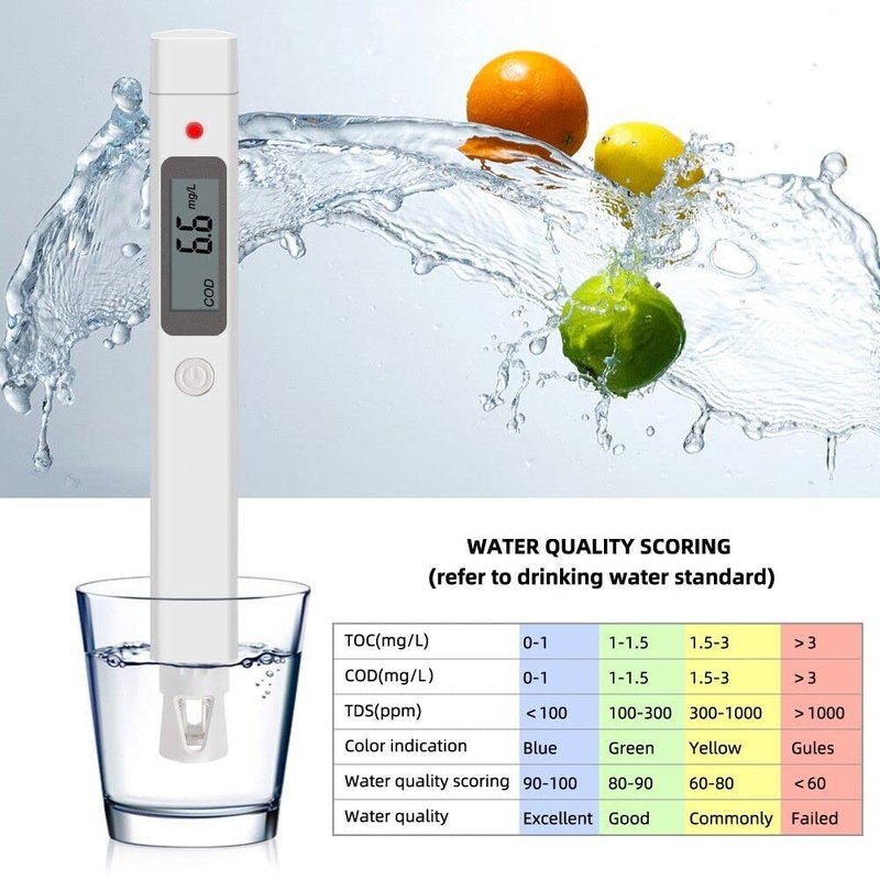 - More important than a TDS meter --- TOC (Total Organic Carbon) and COD (Chemical Oxygen Demand) reflect the pollution of organic matter in drinking water, including natural organic like algae, pathogens, or other microbiological contaminants, as well as synthetic or volatile organic (SOC / VOC) like home/garden use chemicals or THMS. TOC reacts with chlorine and forms carcinogenic disinfection byproducts (DBP). Know and control TOC prior to chlorination of your well water.