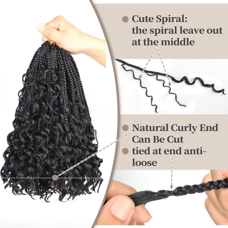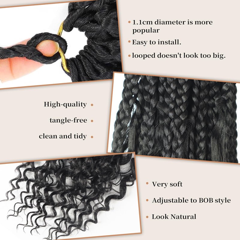 - 2.Crochet Braids With Curly Ends:9 Packs Goddess Box Braids Crochet Hair,Length:12Inch,Color:Black.Box Braid Crochet Hair Made with High Quality Flame-Retardant Low Temperature Synthetic Fiber.