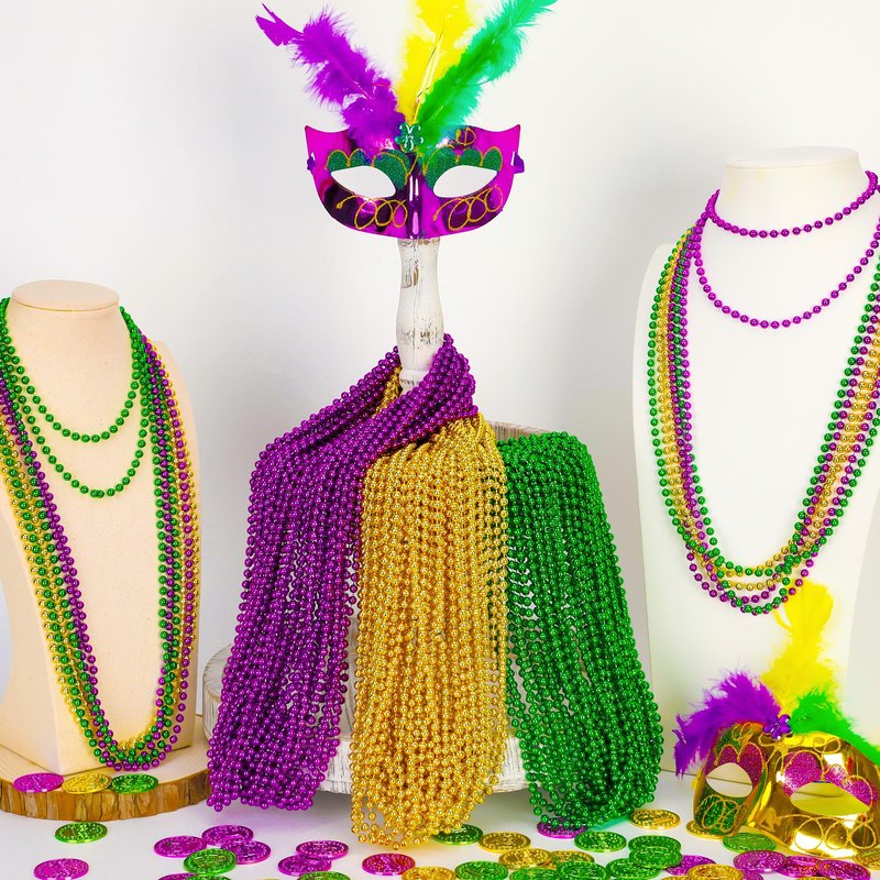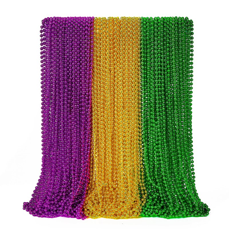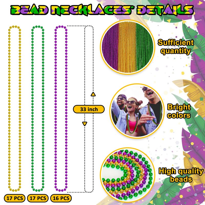 - Mardi Gras Decor - Include 50pcs 3 kinds of bulk Mardi Gras beads. Multiple Mardi Gras beads necklace, one set to meet all your needs!