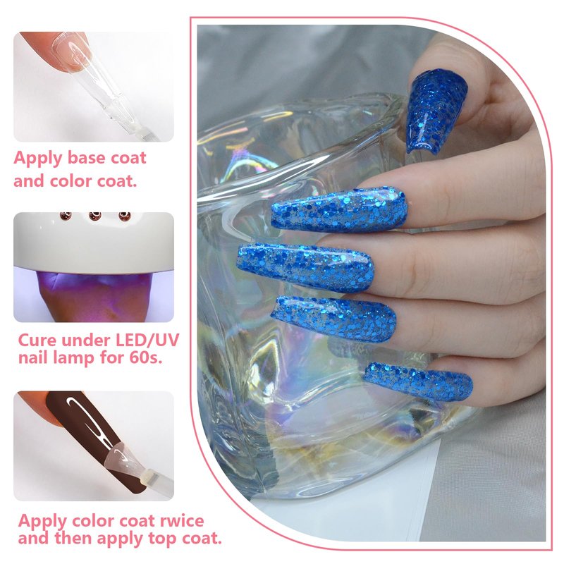 - 【Easy to Use】All gel nail polish set need to be cured under LED nail dryer. Base and Top coat required. Average for LED nail lamp 60-120 secs.