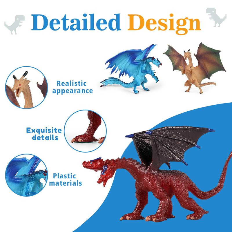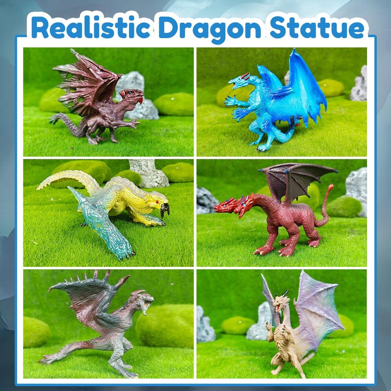 You will get 6 pcs dragon figures, these collectible dragon toys are designed to captivate the imagination with intricate details, featuring a variety of dragon styles, perfect for dragon enthusiasts and kids aged 3-5. The dragon figurines bring to life mythical creatures from stories and legends, inspiring creative play.