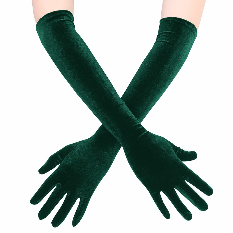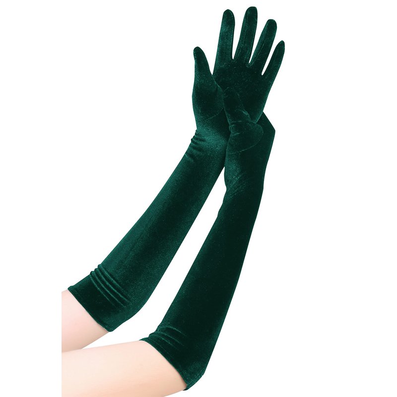 EORUBE Long Opera Gloves for Women Velvet Gloves 1920s Flapper Stretchy Elbow Length Halloween Costume Gloves (Dark Green)