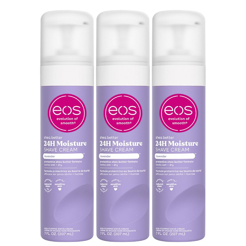 eos Shea Better Shaving Cream- Lavender, Women's Shave Cream, Skin Care, Doubles as an In-Shower Lotion, 24-Hour Hydration, 7 fl oz, 3-Pack