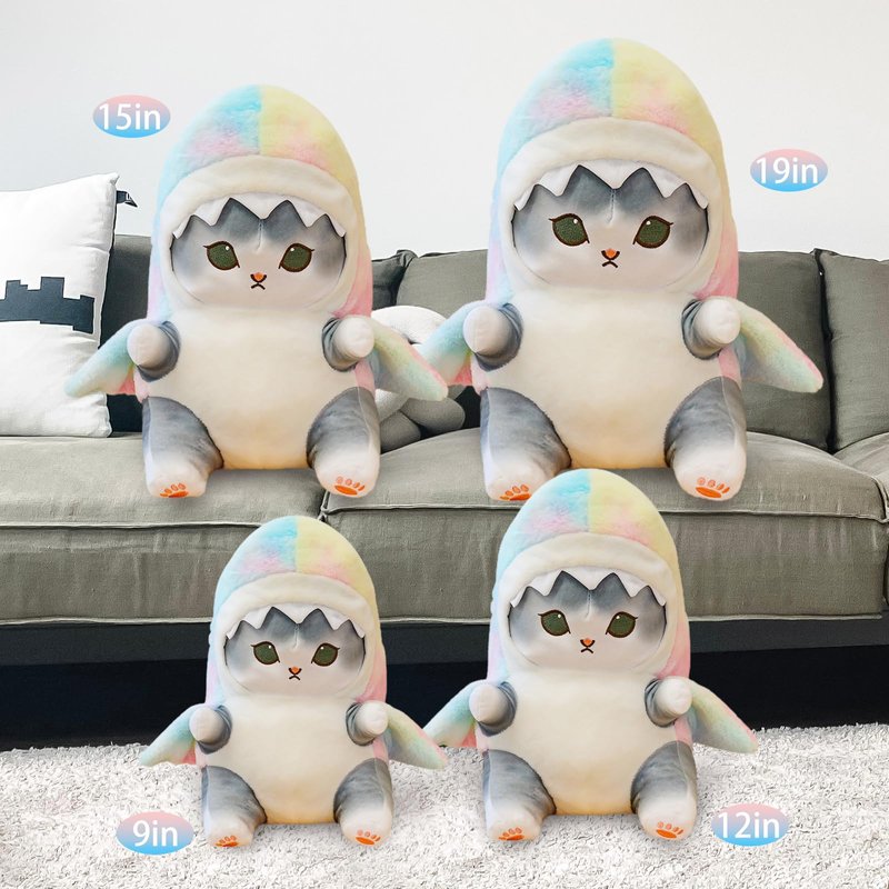 - SHARK CAT PLUSH PILLOW SIZE: 9 inches,12 inches,15 inches,19 inches. this pillow offers versatility and charm, making it the perfect addition to any space. Whether you're looking for a playful companion for your feline friend, a whimsical accent for your home decor, or a unique gift for a stuffed animal lover, this pillow is sure to make a splash. Embrace the harmony of sharks and cats with the Shark Cat Plush Pillow and bring a touch of adventure and fun to your daily life!