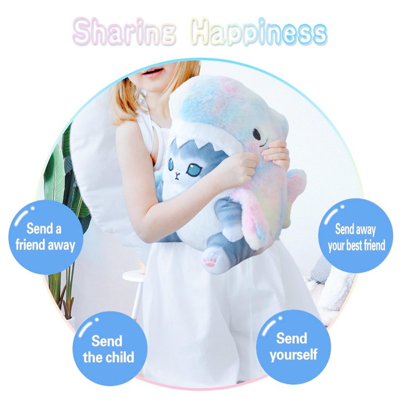 - IDEAL FOR ALL AGES: Whether it's for a toddler's bedtime stories or a tween's after-school relaxation, this Shark Cat Plush Toy is the perfect companion for kids of all ages. Its cute appearance and cuddly feel make it a hit among cat and shark lovers alike. Make a splash at your next gift-giving occasion with this shark cat plush toy. Whether you're buying for a cat lover, a shark enthusiast.