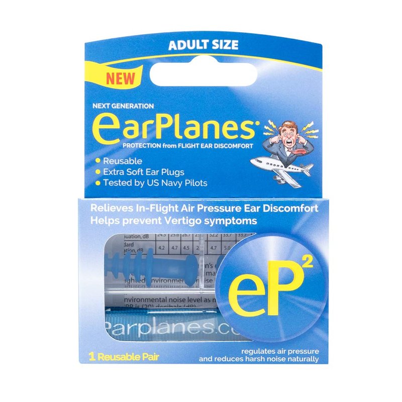 eP2 by Cirrus Healthcare Second Generation EarPlanes Earplugs Ear Protection From Flight Air And Noise Sound Ear Discomfort is caused by the rapid changes in cabin air pressure in airplanes when taking off and landing. Don't suffer and use the best ear protection equipment for your flight. eP2’s relieve ear discomfort, clogging, and popping by naturally filtering and regulating air pressure. eP2 are a must have for your next trip and are Essential for your carry-on bag! eP2 are safe, soft, And reusable for 5 round trip flights - Made from soft hypoallergenic silicone. Use the plastic ends as fastening points for the tether. Please Note the plastic end can be removed if you don’t like having the tether, Warning that once the cap is removed they won’t fit back onto the plug. With the end cap removed the plug will function normally for the five round trips. Don't forget to pack your eP2 and put an end to ear pain. Enjoy your trip without suffering from the travel. Instructions: Before Inserting, pinch nose and blow. For best results, ALWAYS insert eP2 one Hour BEFORE landing. Remove AFTER landing and when cabin door is opened. Chronic sufferers may ALSO insert eP2 just BEFORE takeoff. eP2 may be removed when the airplane reaches MAXIMUM altitude and reinserted one hour BEFORE landing. For maximum results, use your opposite hand to pull the top of your ear upward. Insert the ribbed end and turn like a corkscrew until snug.