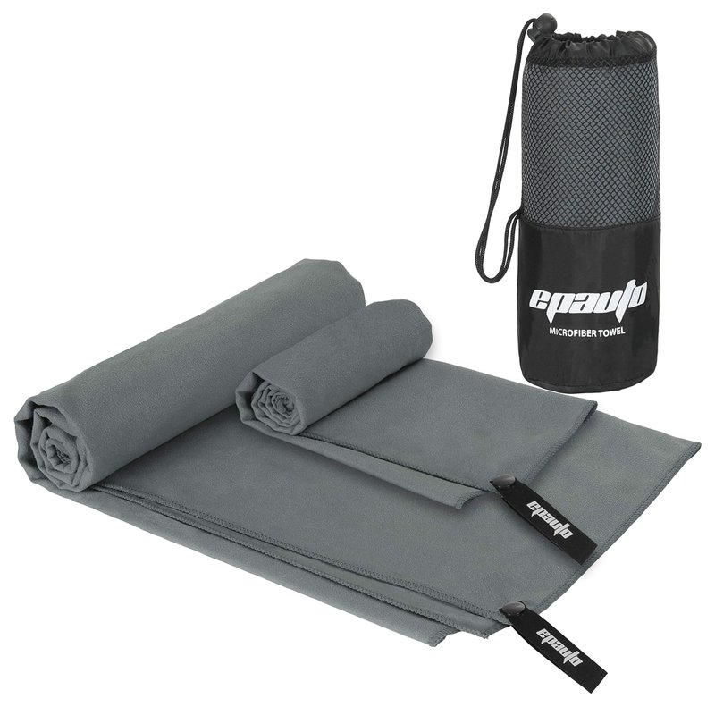 EPAuto 2-Pack Microfiber Fast Drying Travel Gym Towels, Grey, (60''x30'', 24''x15'')