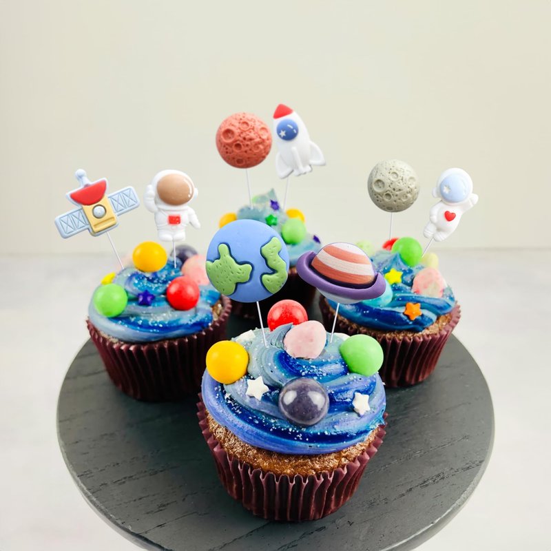 - 【DIY Required】: 24Pcs Outer Space Cupcake Toppers can put in the cake directly! These 24Pcs Outer Space Cupcake Toppers saves your time and super easy to use. You can easily dress up your birthday theme cakes, yes! but don't stop there, put them into desserts, cookies, fruit pieces, appetizers, muffins and so much more!