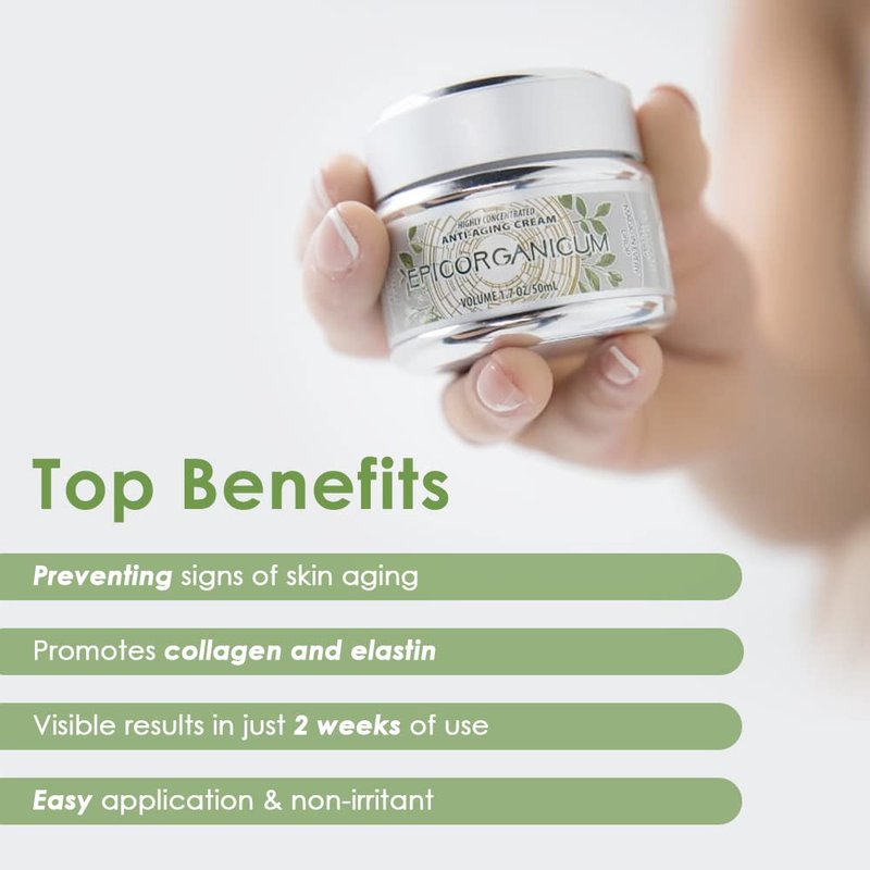 Epic Organic Age Defense | Men's Face Moisturizer | Anti-Aging Cream with Hyaluronic Acid, Collagen | Day and Night Facial Skin Care | Anti Wrinkle Face Cream | 1.7 oz