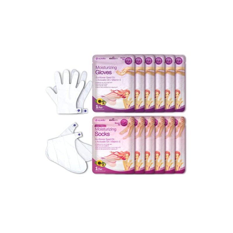 Epielle Moisturizing Hand & Foot Masks (Glove & Socks 12pk) for Dry Hand, Dry & Cracked Heel Spa Masks Sunflower Seed Oil + Avocado Oil + Vitamin E,Mothers Day Gifts