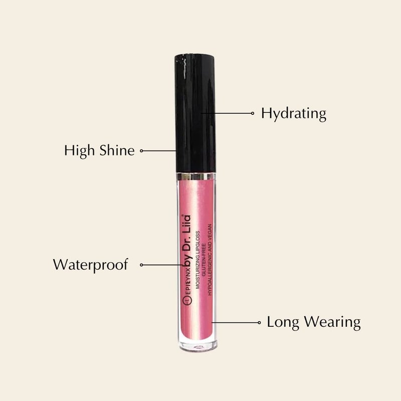 EPILYNX by Dr. Liia Vegan Moisturizing, Long Lasting Lip Gloss - Satin & Glitter - Allergen Free for Sensitive Skin - Shimmer Pink