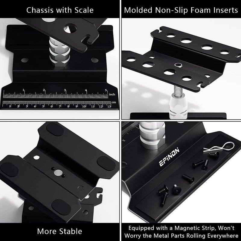 EPINON RC Car Stand RC Work Stand RC Car Repair Work Stand with RC Screwdriver Kit Screws Pallet for 1/8 1/10 1/12 1/16 1/18 RC Car Truck Crawler (Black)