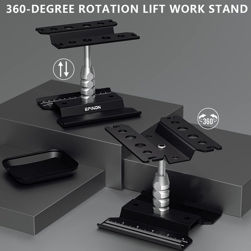 - 【360-degree Rotation】360-degree rotation, chassis with scale, you can measure the length of the parts, equipped with a magnetic strip, won't worry about the metal parts rolling everywhere.