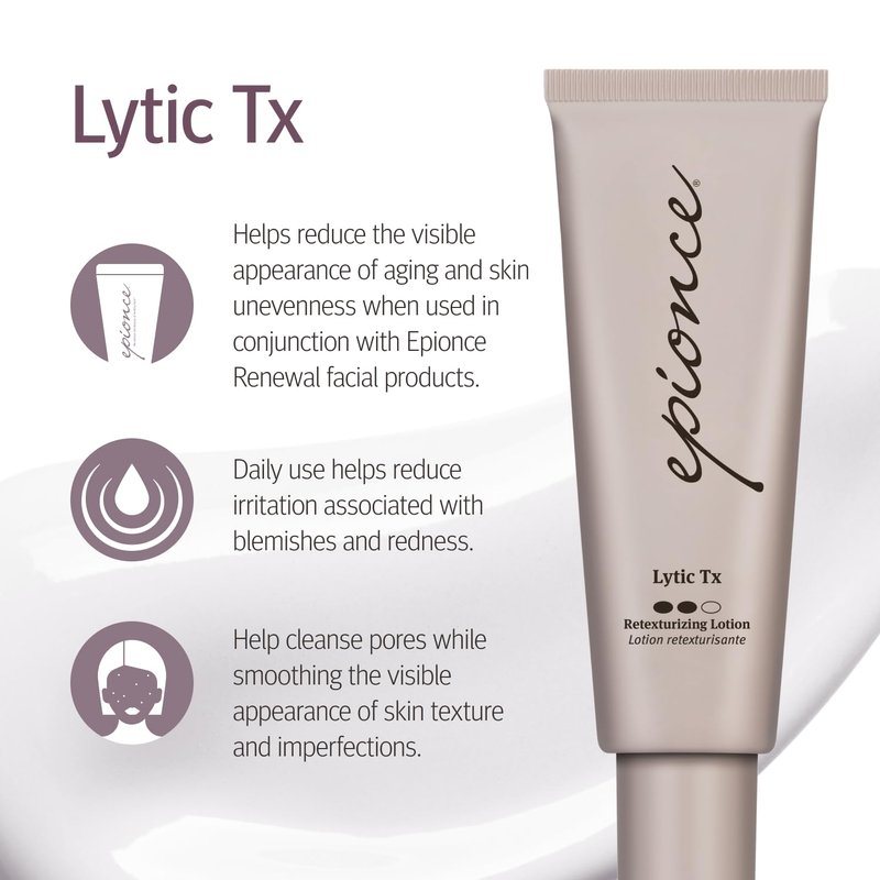 - Usage: Lytic Tx is a moderate-strength product that helps cleanse pores while smoothing the appearance of skin texture and imperfections. Daily use helps reduce irritation associated with blemishes and redness.