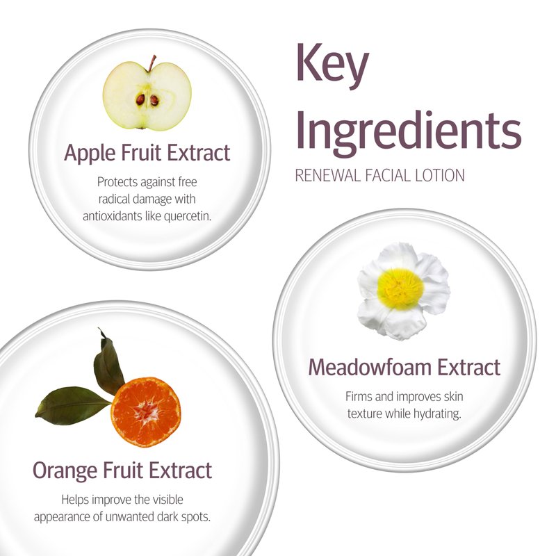 - Usage: The Renewal Facial Lotion is a hydrating lotion that reduces the appearance of fine lines and wrinkles. It contains the same active ingredients as Renewal Facial Cream but in a lighter formula.