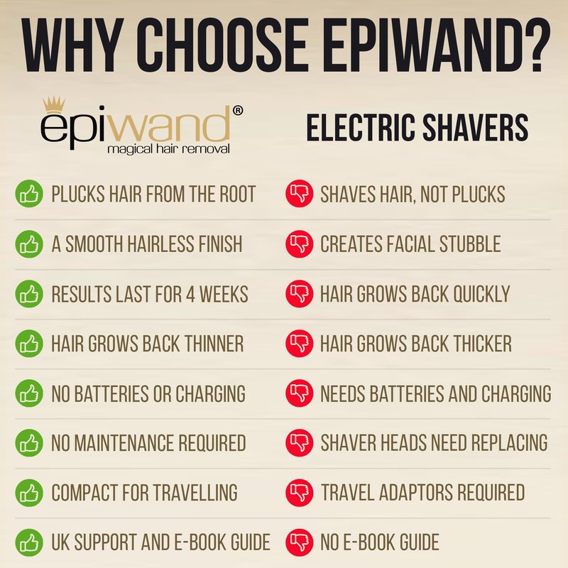 - RESTORE YOUR CONFIDENCE: If you or someone you love is self-conscious about noticeable facial hair, the Epiwand is a no-brainer. This tool causes hair to grow back less coarse over time and to can last for up to 4 weeks. It makes a perfect gift for a friend and a great addition to your beauty kit. Feel more confident and facial hair free every time you leave the house by investing in your own low cost Epiwand facial hair epilator today.