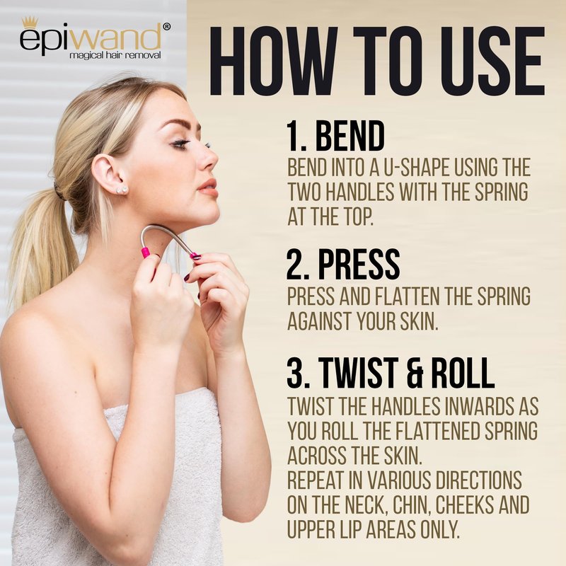 - WOMENS FACIAL HAIR REMOVER - Wave goodbye to your peach fuzz and upper lip mustache. The Epiwand facial hair remover has been designed to remove women’s unwanted facial hair from the cheek, chin, neck and upper lip areas quickly and easily. Simply roll the epilator spring across your face. Each wand comes with instructions and requires no batteries or maintenance.