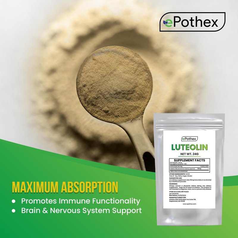 ePothex Pure Luteolin Powder 24 Grams, Brain and Nervous System Support, Promotes Immune Functionality, Maximum Absorption