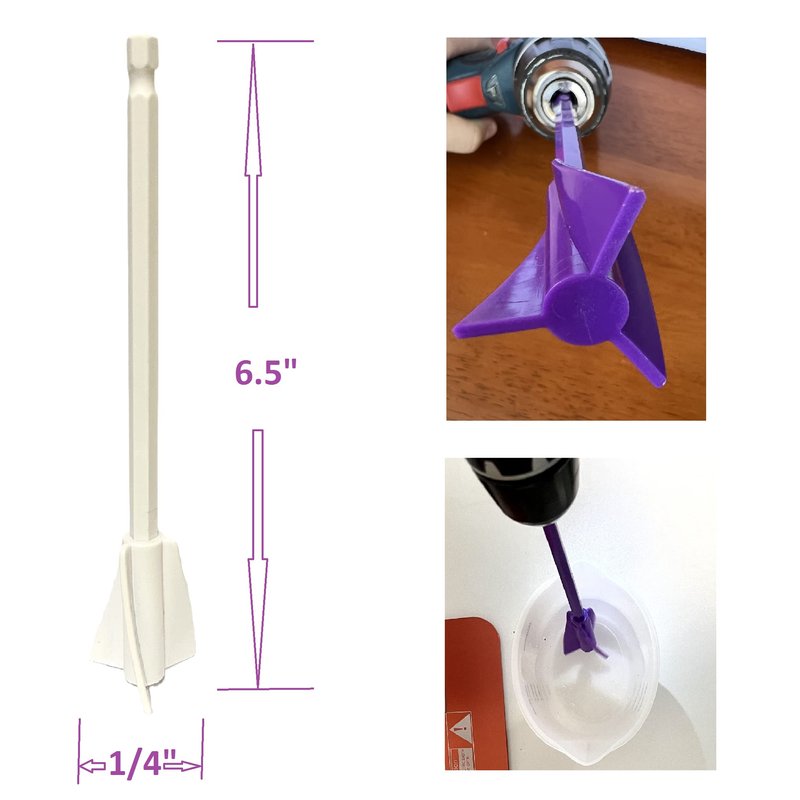 - Minimize Bubble: Our mixer paddle designs spiral Three-blade according to the working principle of spiral mixing, it can make stirring epoxy so much easier and more evenly. Besides, it can also minimize the addition of bubbles into your mix.
