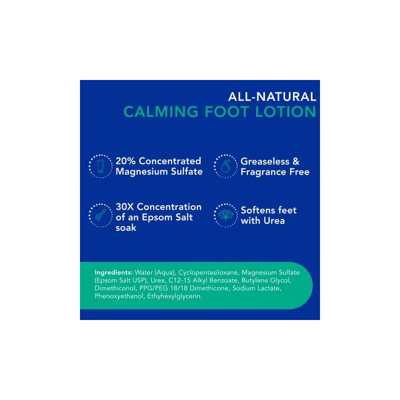 - Soothing Foot Care - Fortified with natural Urea, the topical Magnesium Sulfate lotion penetrates deep below the skin offering support for tired and sore feet, ankles, leg cramps, and restless legs after a long day of standing or intense workouts.