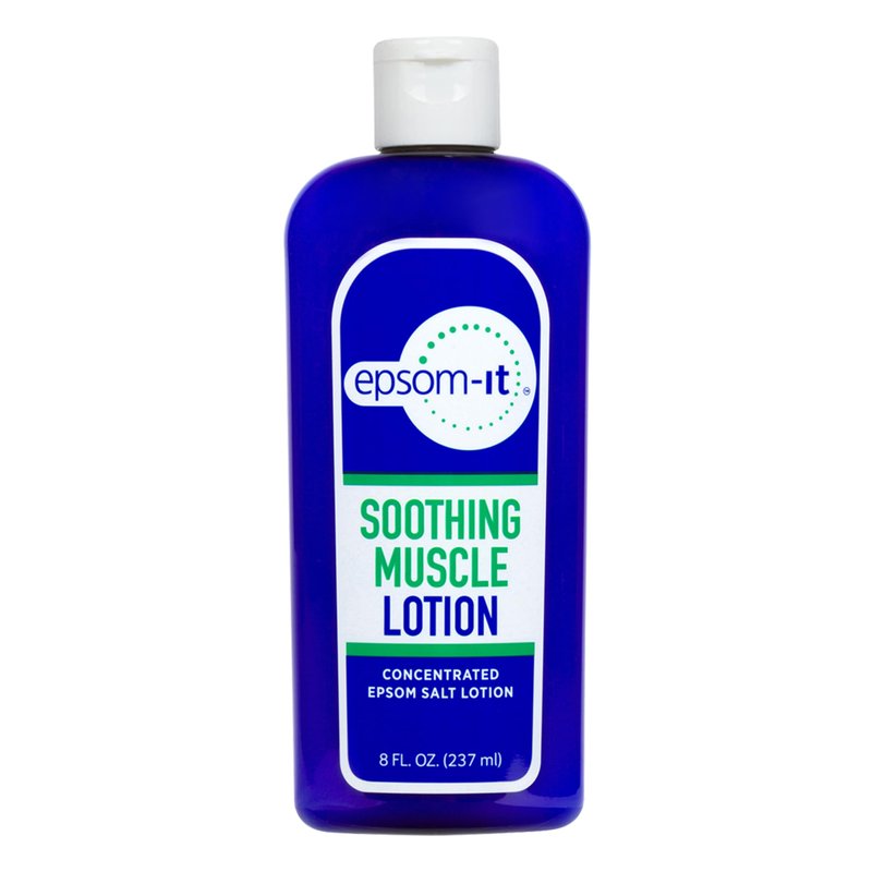 Epsom-It Soothing Muscle Lotion 8.0 oz Harnessing the 400-year history of Epsom Salts in an easy-to-use magnesium body lotion! Experience the benefits of an Epsom salt bath anytime, anywhere, without needing a tub, or time for a foot soak! Epsom-It’s patented concentrated formula combines USP grade magnesium sulfate (the purest form), with arnica to create a convenient unscented Epsom salt lotion that delivers targeted support to sore muscle aches and leg cramps. Simply massage the greaseless, paraben-free body butter onto the skin for instant calm. Whether you're a dedicated athlete speeding up post-exercise recovery, combatting general daily aches, hip discomfort and tight muscles, or looking to calm achy feet, joint discomfort and sore knees after a long day standing, Epsom-It magnesium sulfate cream is used and recommended by world-class athletes and Physical Therapists to provide a targeted, dependable solution for natural muscle and joint care. How To Use Epsom It Muscle Recovery Lotion Apply the magnesium calming cream generously to affected areas once or multiple times a day as needed. Massage thoroughly to receive maximum benefits. The travel sized packaging means the natural muscle cream is easy to apply at home, or to take with you on your travels. Key features of the Epsom Salt Cream Targeted sore muscle support 20% magnesium sulfate – Active ingredient absorbable through the skin Fortified with Arnica Paraben-free, greaseless, fragrance-free Not tested on animals Made in the USA No tub needed Trusted by professionals Reclaim Your Freedom of Movement Rediscover the joy of an active lifestyle with this Epsom salt rub. The magnesium lotion gel is designed to increase relaxation and enhance muscle function by calming sore and tired muscles, promoting healthier habits, lifting overall morale, and enhancing life's enjoyment.