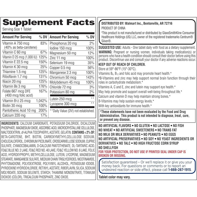 - Compare to Centrum Silver Adults 50+