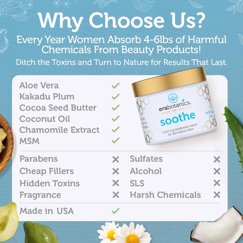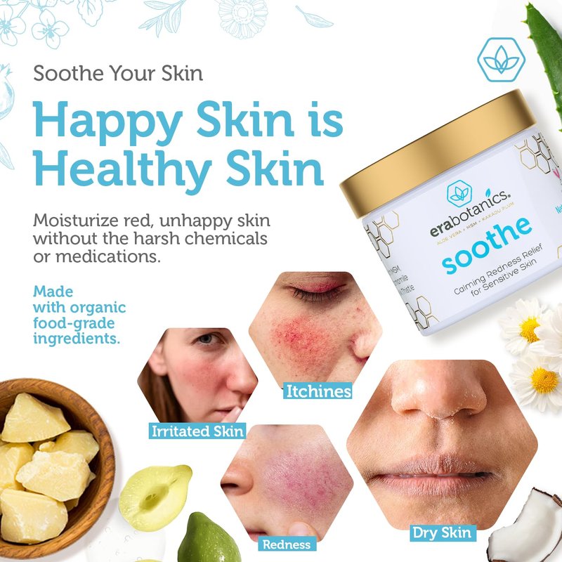 - Instant Relief & Long Term Skin Health: Don’t just mask symptoms of redness and irritation- Era Organics Soothe Rosacea cream treats your skin to nature’s best soothing ingredients to support a lifetime of stronger, healthier, happier looking skin