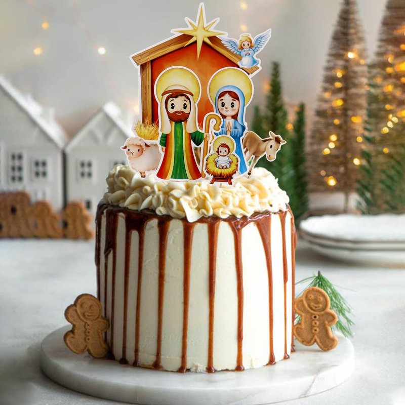 Ercadio 24 Pcs Christmas Nativity Cupcake Toppers Jesus Birthday Merry Christmas Cupcake Picks for Holy Nativity Scene Theme Christmas Jesus Birthday Party Supplies