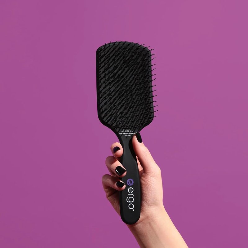 Experience salon-grade hair styling with the Ergo ERG1000 Super Gentle Large Paddle Brush.
