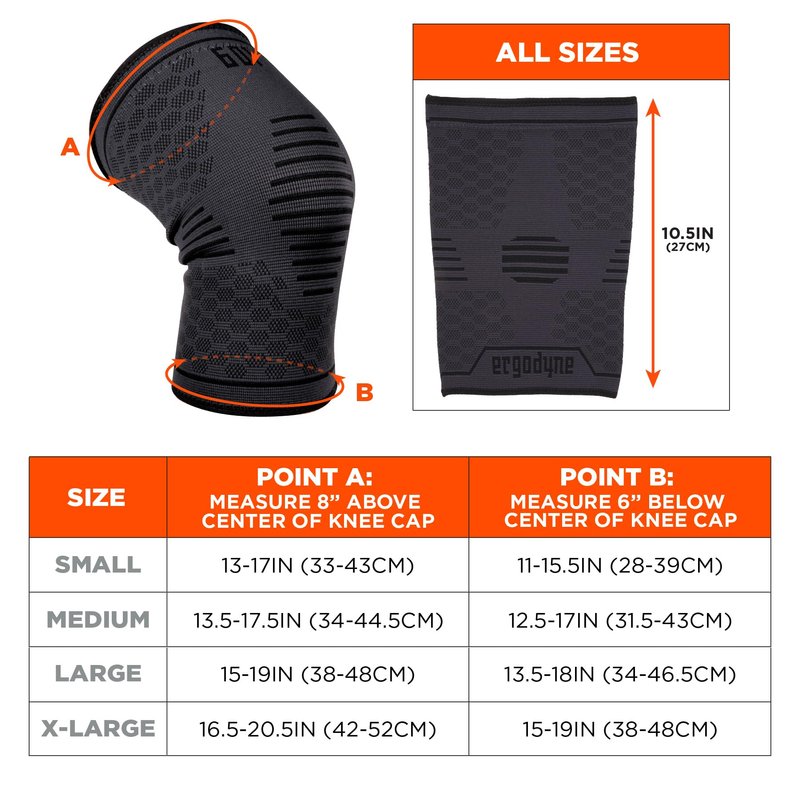 Ergodyne ProFlex 601 Knee Compression Sleeve Support for Men and Women Black, Medium