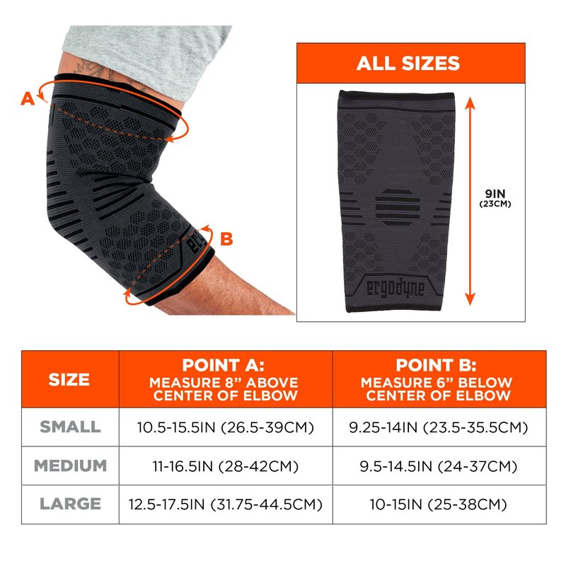Ergodyne ProFlex 651 Elbow Compression Sleeve, Brace Support for Men and Women Black, Small