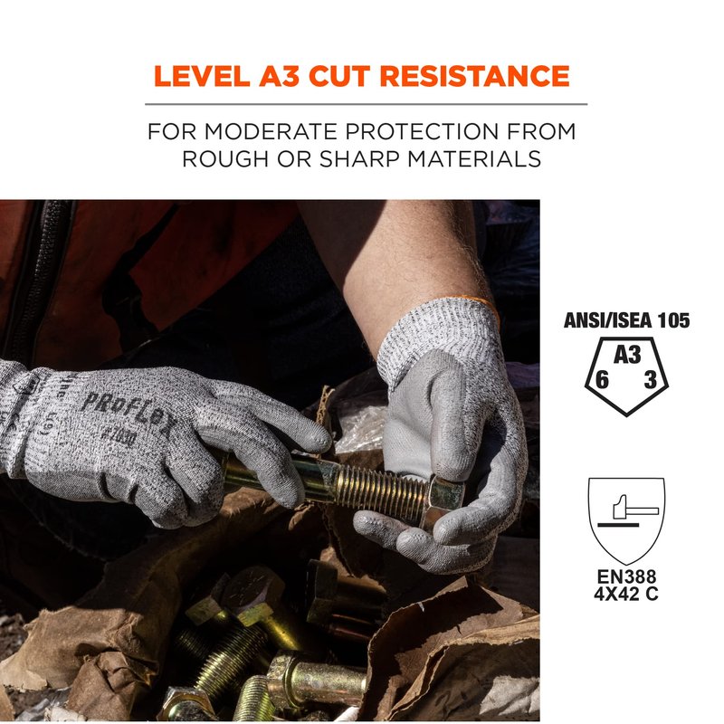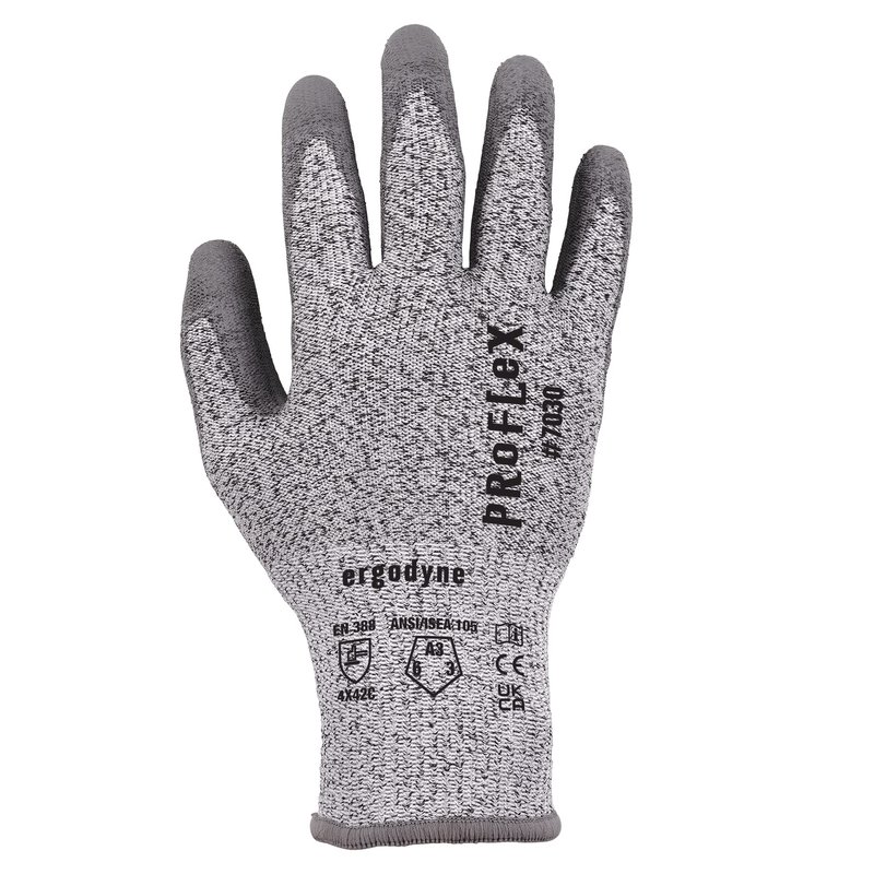 Ergodyne ProFlex 7030 Cut Resistant Work Gloves, ANSI A3, PU Coated Palms for Flexible No Slip Grip, Abrasion Resistant, 13g, Gray, Medium