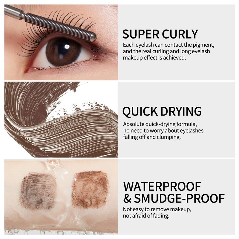 - 【SUPER CURLED EYELASHES】Black/Brown Washable Metal Mascara, 0.5mm precision thread is closer to the original width of the eyelashes, allowing each eyelash to contact the pigment, achieving a real curled and long eyelash makeup effect.