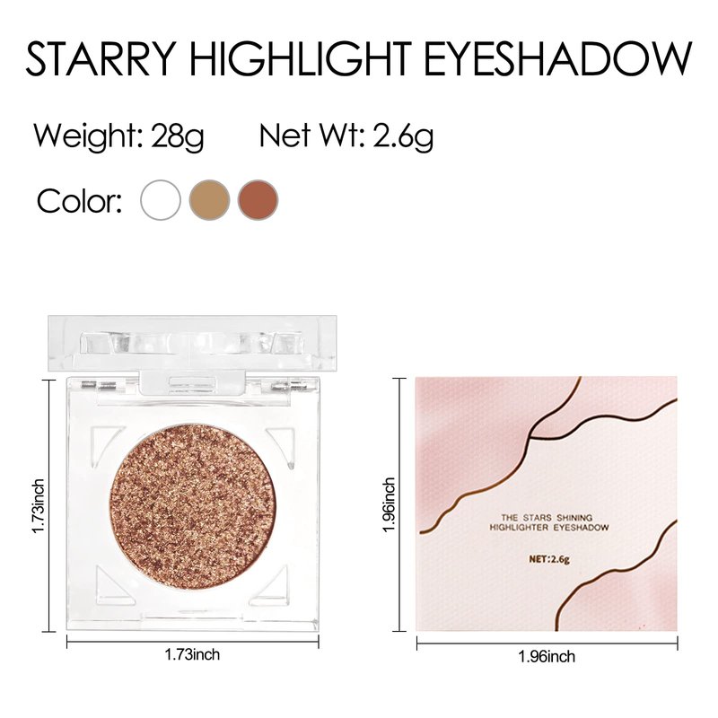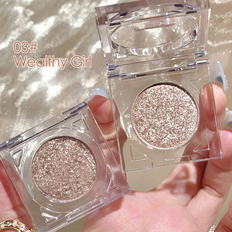 Erinde Shimmer Glitter Eyeshadow Palette, Korean Eye Glitter Makeup, Ultra-Blendable, Sparkle Silver Champagne Gold Eye Shadow, Single Shade Metallic Pigmented Color, 03#