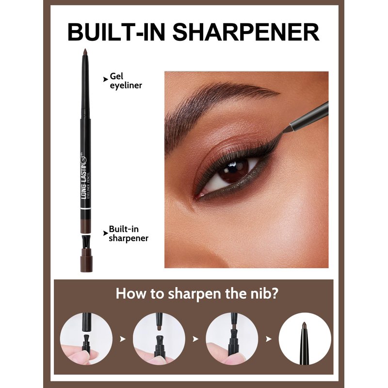 - 【SHARPENABLE EYELINER PENCIL】Use the built-in sharpener to keep the tip on point for expert precision. It creates Bold & Defined Lines, you can enhance your eye shape to your heart's content