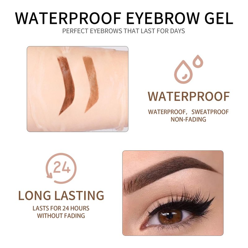 - 【WATERPROOF BROW GEL TINT】This completely waterproof brow gel provides over 24 hours of protection. With strong water resistant, sweatproof and oil-proof properties, you don't have to worry about the color smudging or fading when you sweat, swim or shower. Perfectly keeps your eyebrow shape and full style.