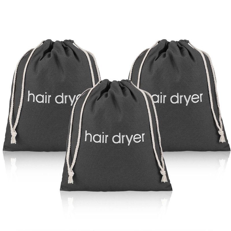 ERKXD 3 | 6 | 8 Pack Hair Dryer Bags Drawstring Bag Container Hairdryer Bag for travel bathroom (3 PCS Grey)