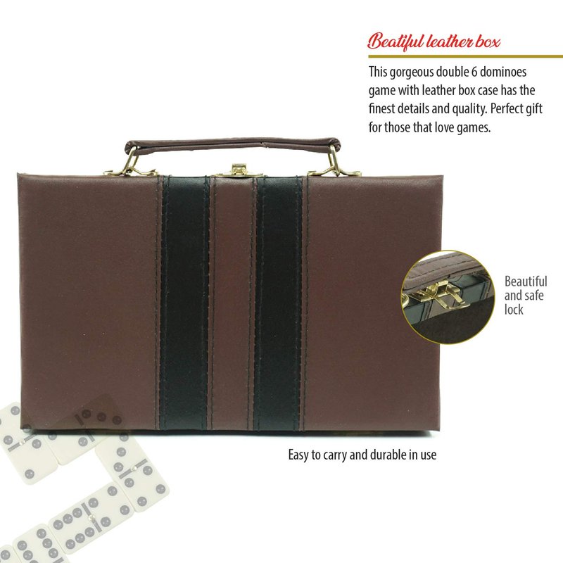 ERLLE Dominos Set Game. Premium Classic 28 Pieces Double Six Domino. Durable Leather Box. Kids, Boys, Girls, Party Favors and Anytime Use. Duoble 6 Dominoes. (Jumbo)