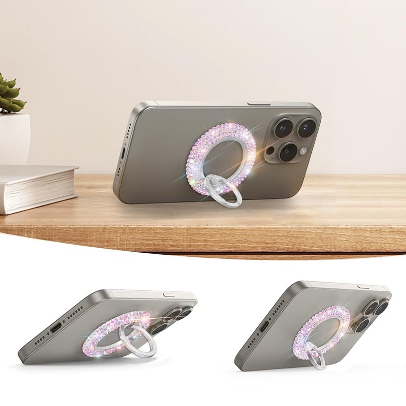 - 【Compatibility】 This magnetic cell phone ring holder can compatible with iPhone 16, iPhone 16 Plus, iPhone 16 Pro, iPhone 16 Pro Max, 15, 15 Plus, 15 Pro, 15 Pro Max, 14, 14 Plus, 14 Pro, 14 pro Max, 13, 13 Pro, 13 Pro Max, 13 Mini, iPhone 12, 12 Pro, 12 Pro Max .This shiny magnetic ring adds luster to your phone.