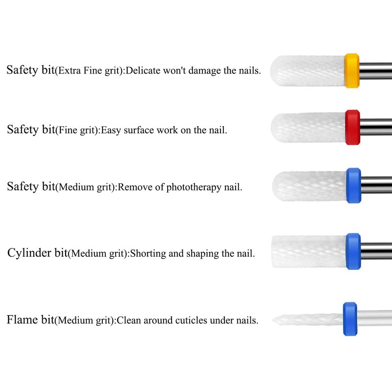 - 【10pcs Ceramic Drill Bits】There include Fine , medium , coarse and Special rough grinding pattern 4 ceramic drill bits texture can adapt to different strengths to accomplish varied professional nail jobs.