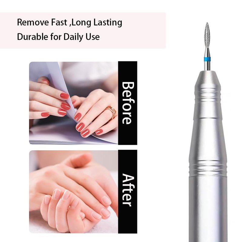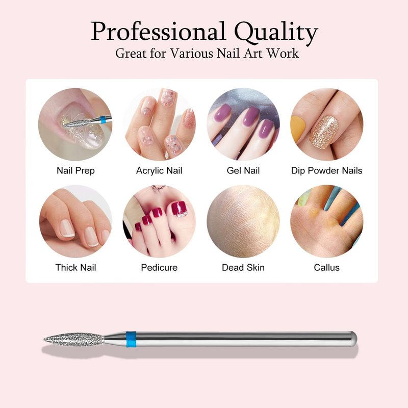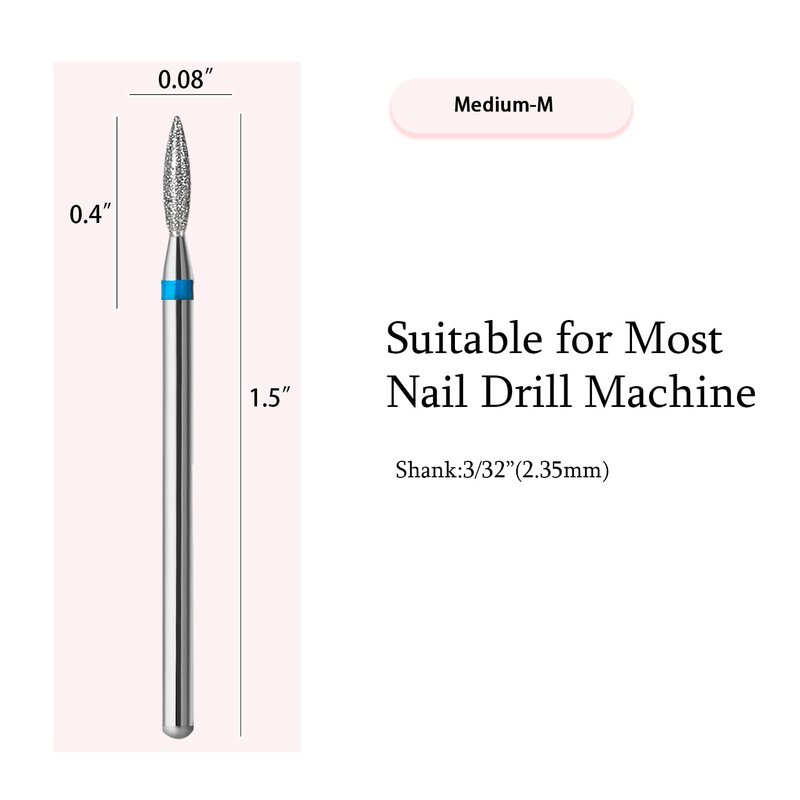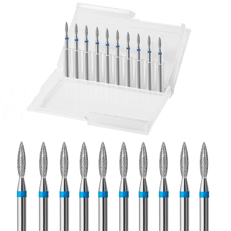 ERUIKA 10pcs Diamond Flame Cuticle Drill Bits Set, Professional Cuticle Nail Drill Bits for Dead Skin 3/32'' Nails Dry Manicure Pedicure Shape Remove Nail Salon Tools (Medium-M)