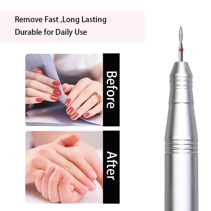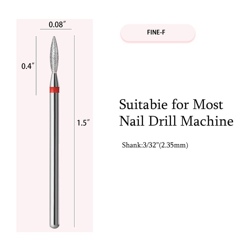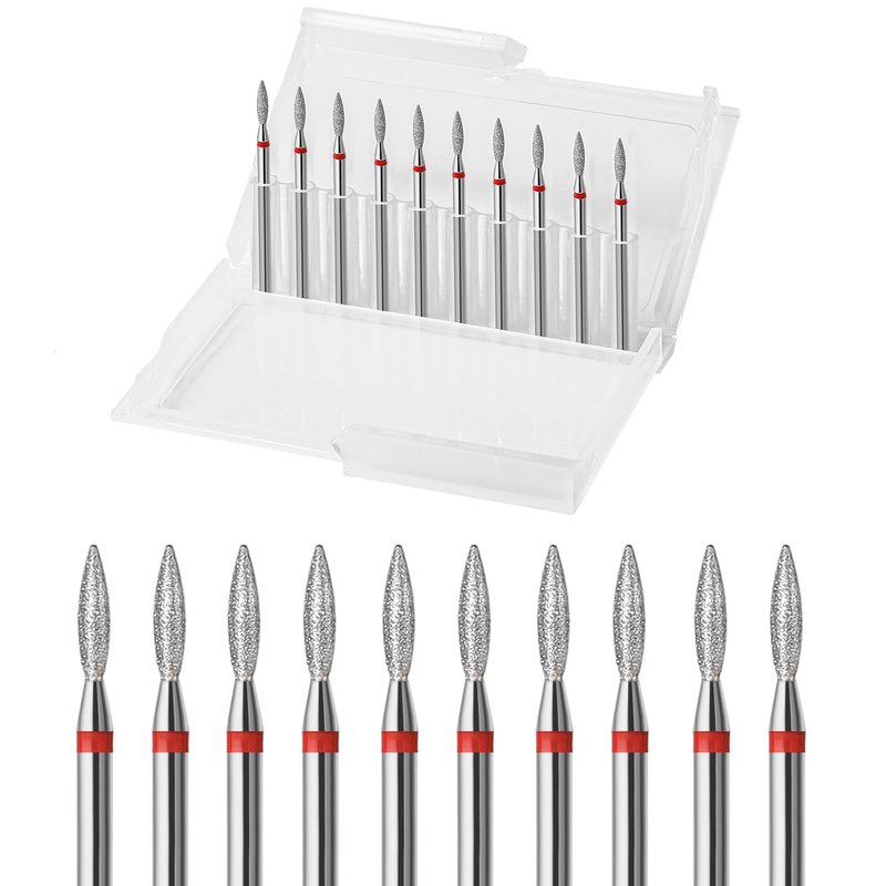 ERUIKA 10pcs Diamond Flame Cuticle Drill Bits Set, Professional Cuticle Nail Drill Bits for Dead Skin 3/32'' Nails Dry Manicure Pedicure Shape Remove Nail Salon Tools(Fine-F)