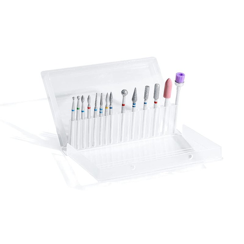 - This package comes with 14 pieces of different nail drill bits with box,packed in a see-through and dust-proof carrying case.